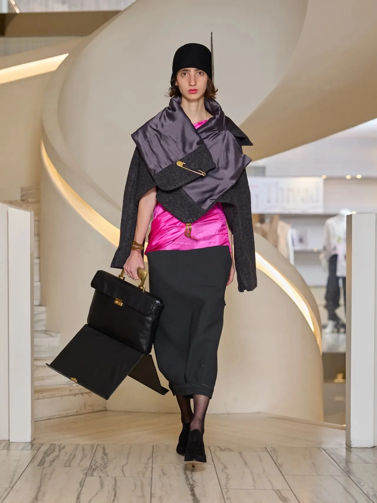 Look 6 from “The Distortion Of” in the Parsons BFA 2025 Fashion Show at the Former Barneys flagship in downtown Manhattan.